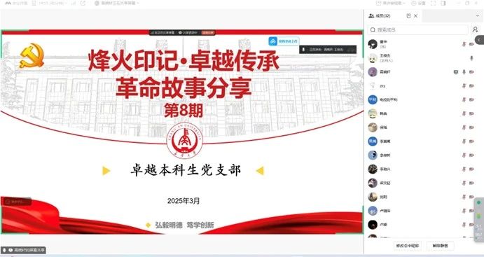 卓越本科生党支部举行了“烽火印记·卓越传承”革命故事分享。通过沉浸式情景讲述、历史文物展示与互动问答,带领数十名党员干部穿越88年时空,重回大渡河畔烽火硝烟,在“铁索寒光”与“热血誓言”中感悟长征精神的永恒力量。