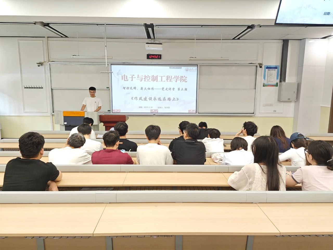 2024级研究生第一党支部于2025年5月30日在南校区北院B171教室开展第3期“智控先锋,薪火相传”党史讲堂系列活动。活动由党支部书记张兴浩主讲,支部全体党员参加。