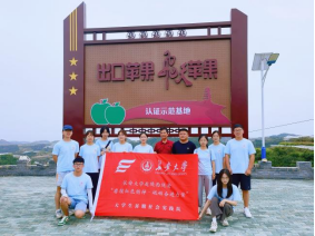 8月24日上午,实践队队员在柳林镇果业站站长乔磊的带领下,参观了南庄河村苹果种植基地,他表示南河庄村在习近平总书记“陕北大力发展苹果种植业”的指示下,开创直播带货、认养苹果树等营销方式,将苹果销海外、上太空,助力村民致富。座谈会上,南庄河村第一书记王东表示,南庄河村将以绿色发展理念,积极推行有机苹果栽培模式,大力发展苹果种植业,让苹果成为村民的“幸福果”“致富果”。
