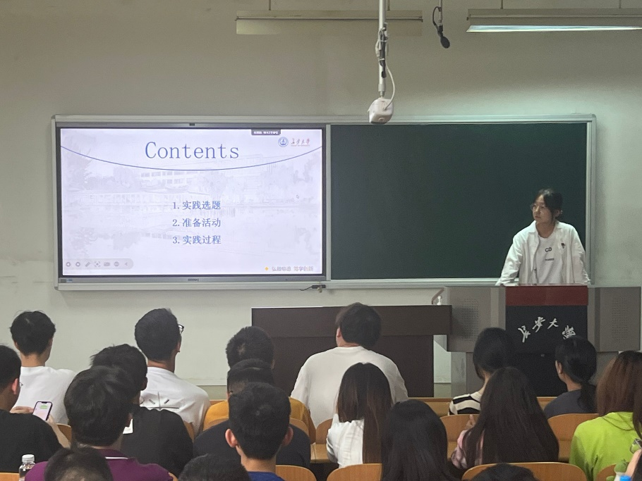 往届暑期社会实践优秀宣传员田博远、优秀团队负责人侯瑶向同学们分享社会实践经验。田博远强调了实践活动及时记录宣传的重要性,指出要以视频、照片、文字等多种形式进行细致的记录,并联系主流媒体进行广泛宣传;侯瑶同学从实践选题、准备活动和实践过程三个方面进行详细介绍并分享经验。