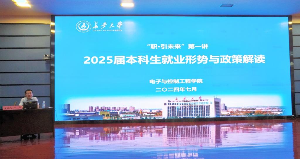 “职·引未来”(第1期)——2025届本科生就业形势与政策解读专题讲座在北辰楼会议中心二层报告厅开展,学院党委副书记李阳主讲,辅导员张馨月、许必颖及2025届全体本科生参加。