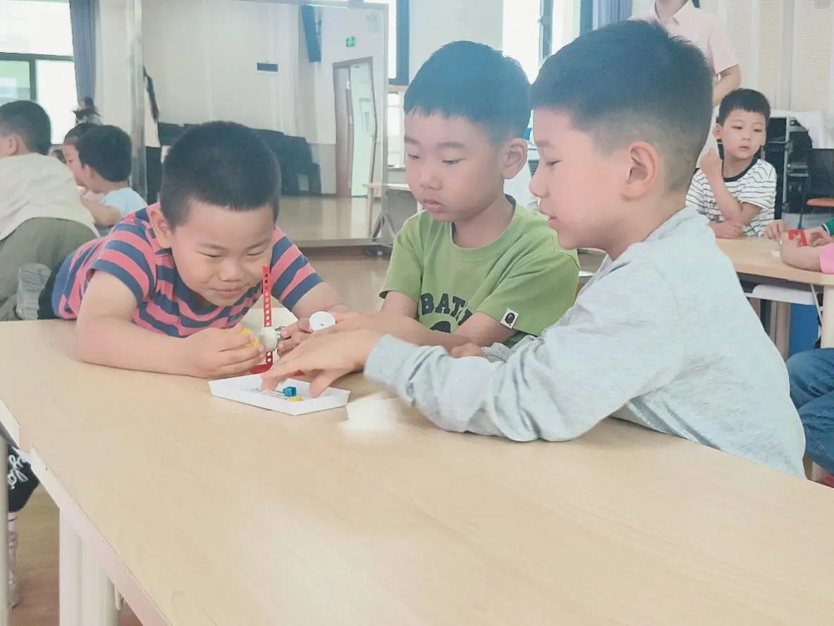 实践出真知,实践操作环节才是本次活动的 “重头戏”。志愿者们现场进行分组并发放了材料包,孩子们兴奋不已,迫不及待进行动手组装,当出现零件安装不牢固、导线连接错误等困惑难题时,志愿者们第一时间出现,耐心地给予指导和帮助,孩子们逐渐掌握了技巧,完成了手摇电动机的拼装。看到灯泡亮起,孩子们的脸上洋溢着自豪与喜悦,欢呼雀跃声响彻整个教室。