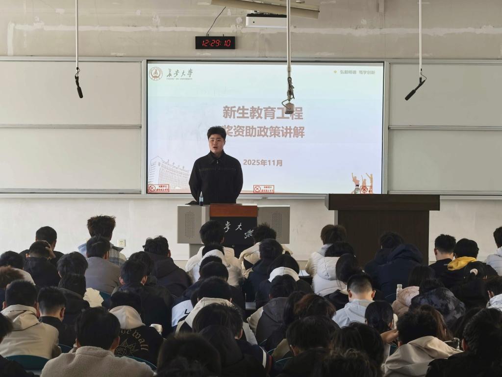 在WM1201教室组织开展了2025级新生奖资助政策宣讲主题班会。本次班会由2025级本科生辅导员吴耀东、孙超共同主讲,学院全体2025级本科生参加。
