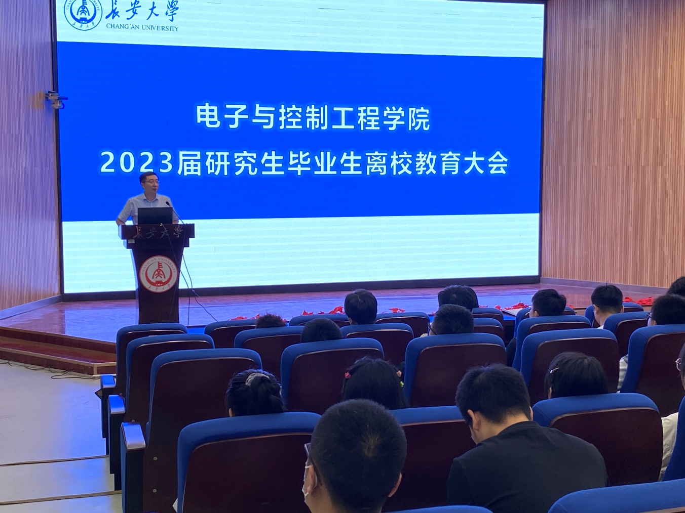 在南校区东院伯声报告厅开展研究生毕业生离校教育,学院党委副书记李阳、学办主任高婷、研究生培养与管理主管熊强和全体研究生毕业生参加会议。会议由研究生辅导员刘平利主持。