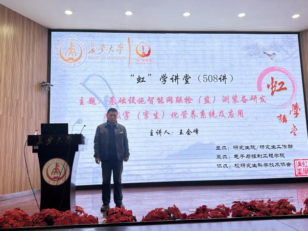 王会峰教授作了题为“基础设施智能网联检(监)测装备研发及数字(孪生)化管养系统及应用”的报告,相关学院共150余名师生参加讲座。