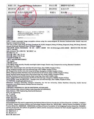 教师朱礼亚作为第一作者的论文“A stable meaningful image encryption scheme using the newly-designed 2D discrete fractional-order chaotic map and Bayesian compressive sensing”入选ESI高被引论文,做爱视频