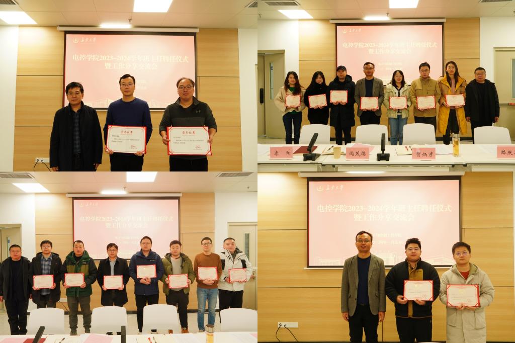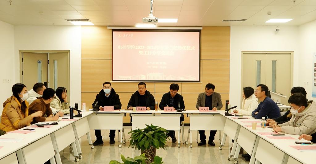 在明德园智通大厦二楼创新创业基地召开了2023-2024学年班主任聘任仪式暨工作分享交流会。学院党委书记贺炳彦、院长闫茂德、院党委副书记李阳、副院长路庆昌,班主任、思政班主任代表,学办全体辅导员参加会议,会议由学办主任高婷主持。