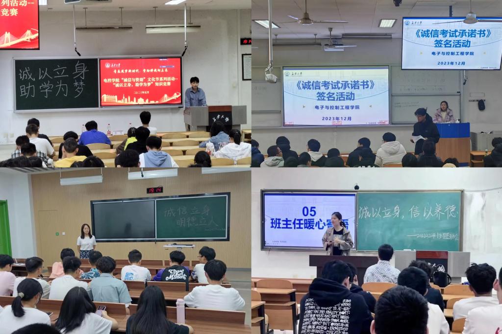 坚持从严从实,强化学风“监督力”。通过教育培训、学生资助、评奖评优等工作,深入开展励志、感恩、诚信主题教育活动。以学校学籍管理、违规违纪、考试作弊处理等相关文件为重点,定期开展考风考纪教育,解读失信考试案例,组织《诚信考试承诺书》签名、学生党员等骨干挂牌考试等活动。学院领导老师深入考场巡视期末考试,加强宣传教育,倡导诚信考试,构建优良学风。